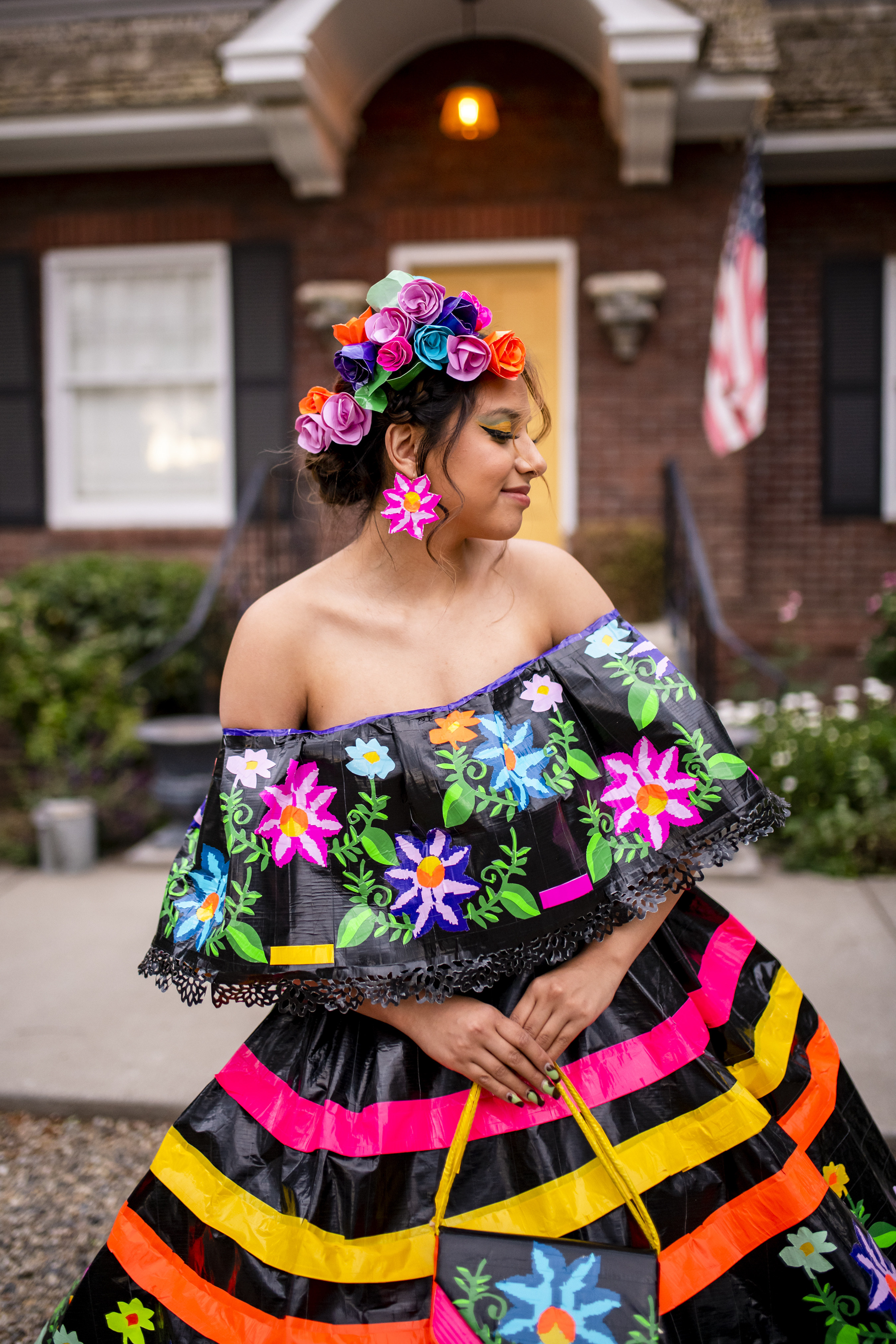May 7 2018 - Explore Amanda Betzs board Empresa Duct Tape Newspaper Dress Challenge followed by 141 people on Pinterest. Now that you have two pieces face up repeat the previous. Larissa Leon 17 twirls her ranchero dress a traditional Mexican dress designed for Folklorico dancers that is entirely made out of duct tape Monday June 28 2021 at her.